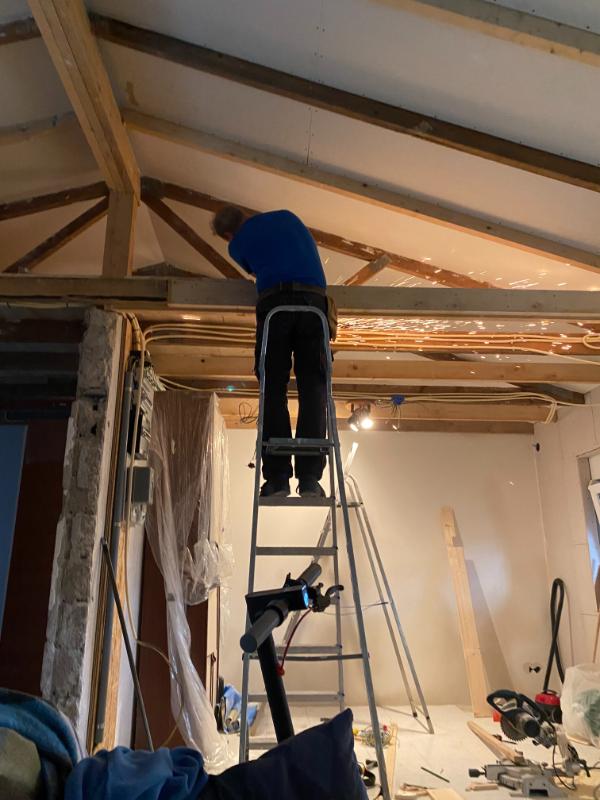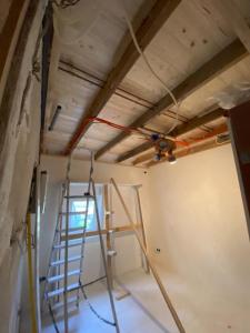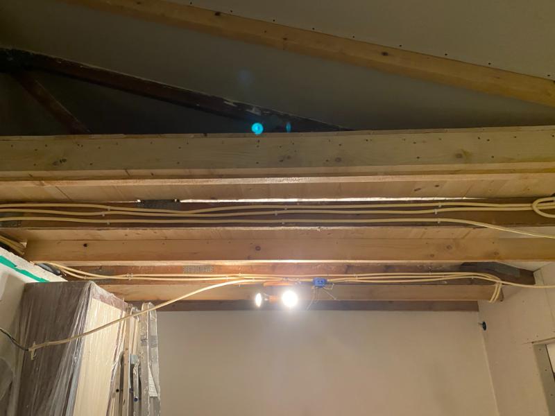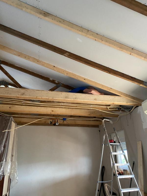 De dagen vliegen om, we werken nog aan een stukje elektra in onze slaapkamer. Nu het plafond nog niet voorzien is van gipsplaten kunnen we er nog goed bij en eventueel dingen aanpassen.