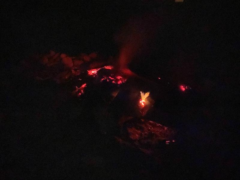 Als we ’s avonds terug komen smeult het vuurtje nog steeds. We kijken naar de sterren en nemen een drankje bij het vuur. Goh wat ruikt dat toch lekker en wat hebben die vlammen toch een hypnotiserend effect.