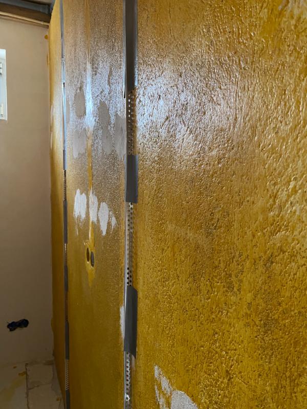 Vandaag gaan we door met onze slaapkamer. Ik heb inmiddels voorgelijmd. Manlief gaat een uitdagende stuukklus aan. Hij heeft de muur moeten uitlijnen want het hele hok was van oorsprong schots en scheef. Je kent misschien de Franse slag wel als uitdrukking? Wij hebben inmiddels een nieuwe uitdrukking erbij Kroatische waterpas..
