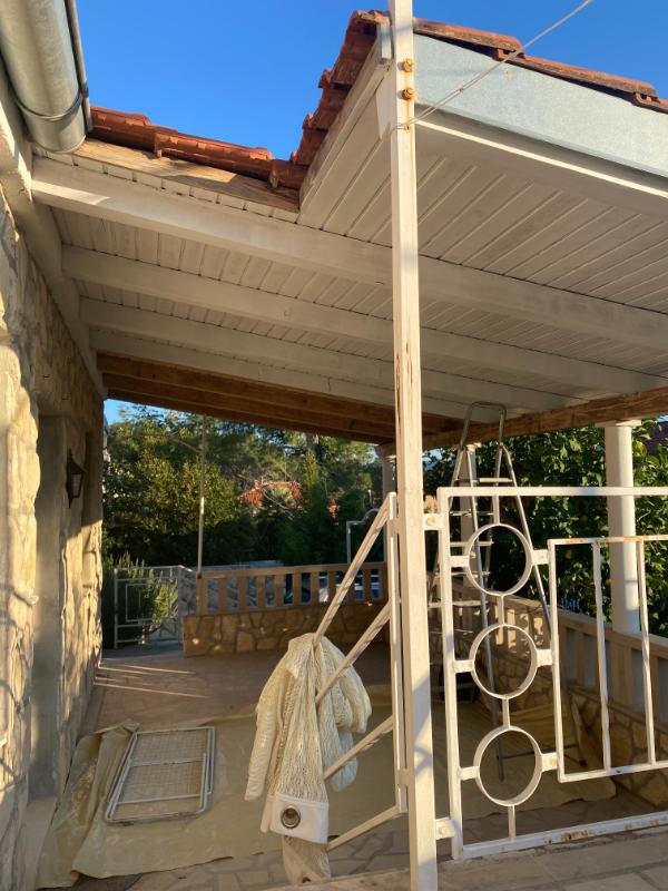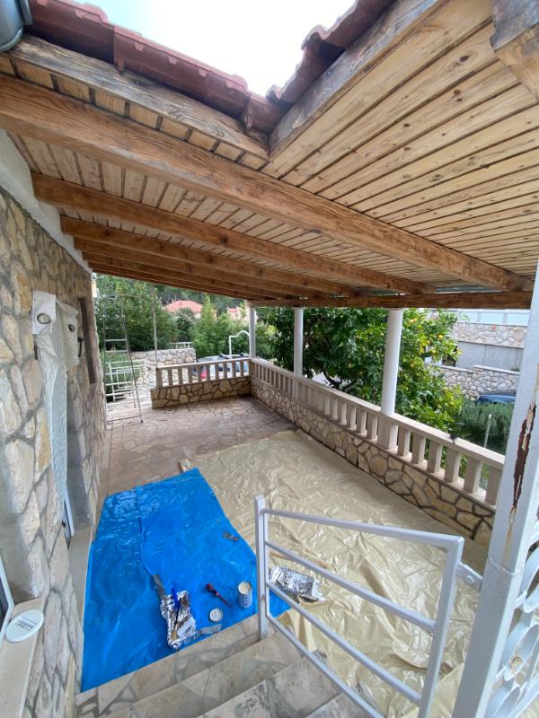 De dagen die volgen wordt er flink geklust. Omdat ik niet wil toekijken als ik niet kan helpen, besluit ik te starten met het schuren van de veranda. Deze is er niet best aan toe. Het is prachtig weer om deze onder handen te nemen.