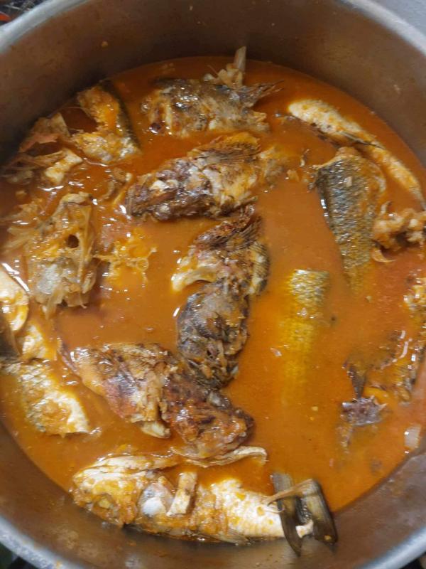 Even dwaalde mijn gedachten af naar de eetproef van Expeditie Robinson toen ik de vissen in de saus zag liggen. En manlief kon mijn gedachten lezen en keek me lachend aan. “lekker he ?”