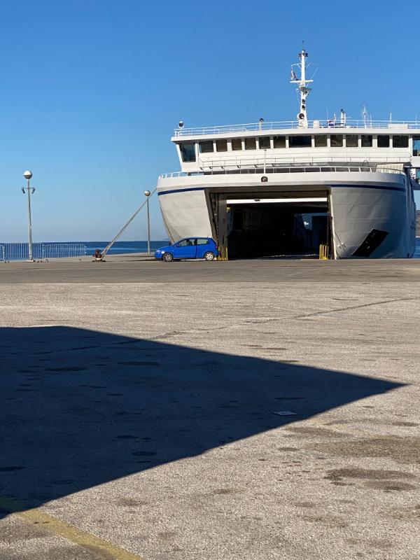 Aangekomen bij de ferry moeten we even wachten. De ferry heb ik zoals altijd onderweg geboekt.