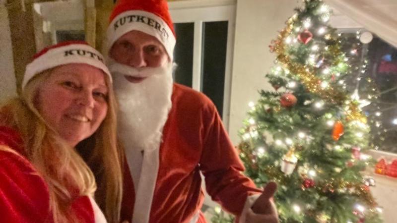 De kerstman en vrouw leggen de kadootjes voor vertrek onder de boom in Spaarndam. En bij ons staat dan ineens uit het niets een tas met kadootjes die we meenemen en in Vrboska onder de boom leggen.