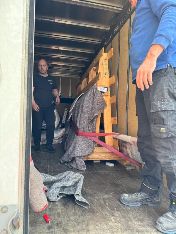 Alles is gelukkig heel aangekomen en er valt een stukje spanning van ons af. Onze eerste vracht is een feit en we kunnen weer door met bouwen.