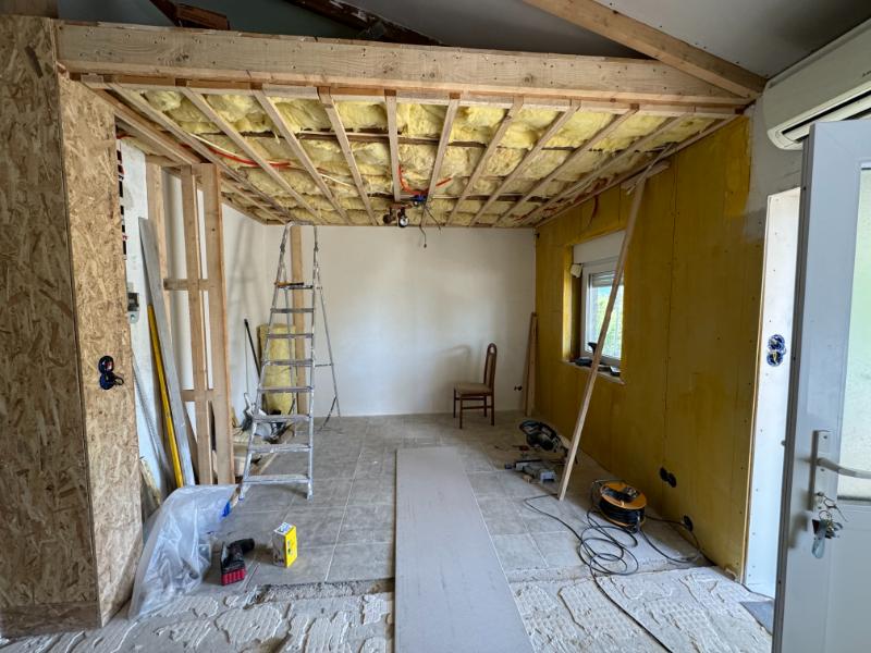Daarna plaatsen we de gipsplaten in de extra ruimte. Zodat het plafond geïsoleerd en weer dicht is. Dat oogt weer als een mooie ruimte.