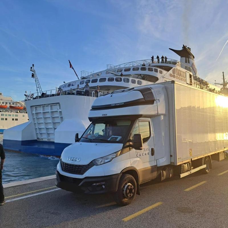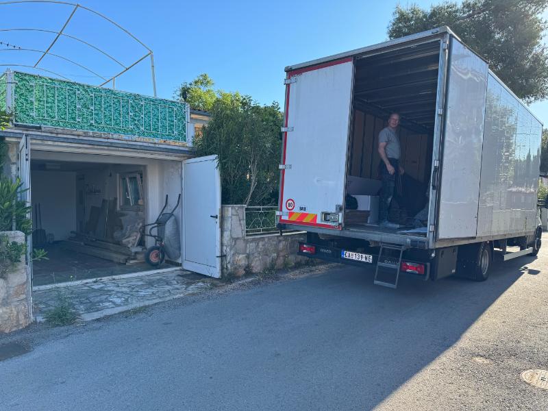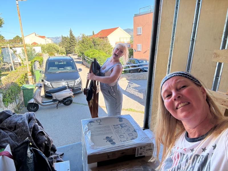 De glazen wand en de bouwspullen zijn inmiddels in geladen en klaar om naar Hvar te worden vervoerd.