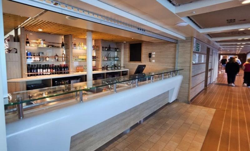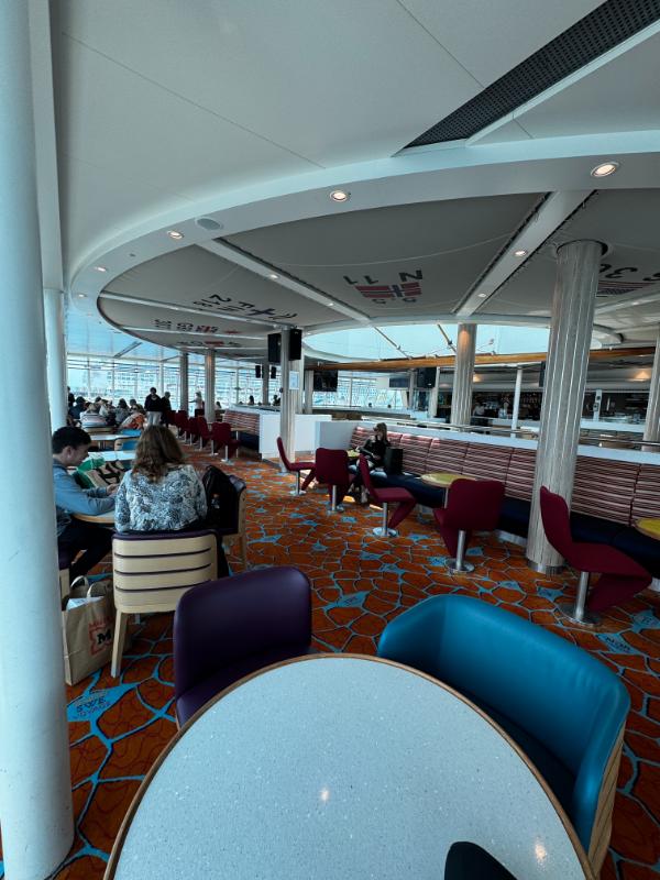 De ferry ziet er geweldig mooi uit en is niet te vergelijken met de oude stink schuit waar wij normaal mee overvaren. Wat een luxe. Zelfs de toiletten zijn schoon en ruiken fris. Er is van alles te zien op de ferry, maar het mooiste is, het uitzicht vanaf onze stoelen op het panorama dek! Helaas moeten we hier niet aan wennen, want over een paar weken is deze luxe voor iedereen voorbij.