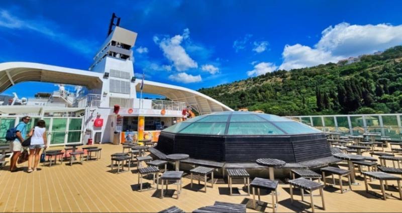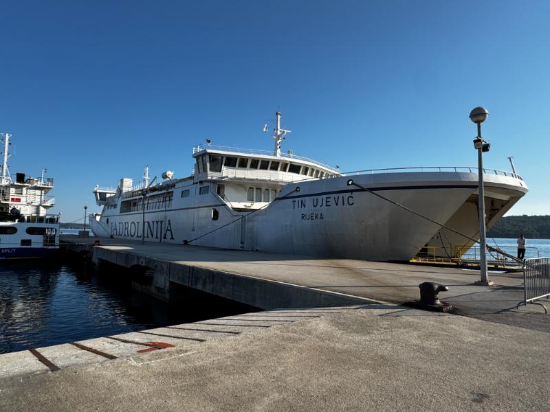 Na een tijdje wandelen we terug naar de ferry. Wat een verrassing we mogen met de Dalmacija. Deze ferry is helemaal opgeknapt en vaart nu tijdelijk tussen Split en Hvar (Stari Grad) voordat hij weer tussen Dubrovnik en Bari Italia zal gaan varen.
