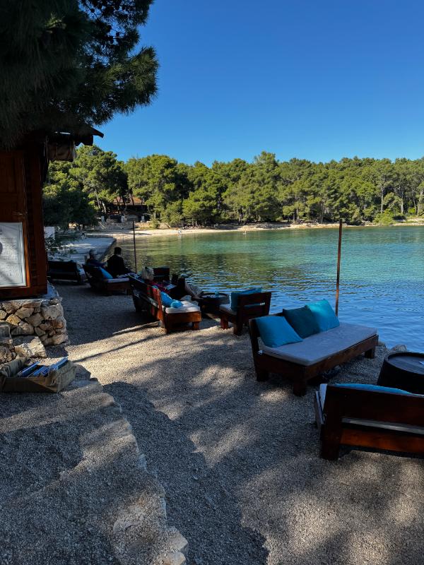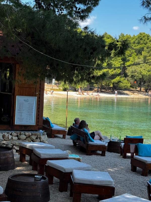 Daarna rijden we naar Soline Beach waar het strandtentje beach Kafic de beste stek is om lekker te relaxen. Met een koud drankje en een prachtig uitzicht. We nemen de afgelopen dagen door. Ik kijk nu al uit naar vanavond, waar ik nog als klap op de vuurpijl een super afsluiter voor de schoonies heb gepland. Little they know !