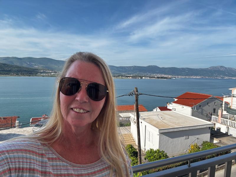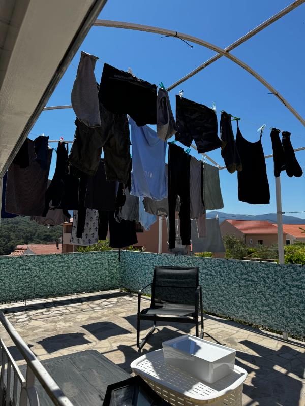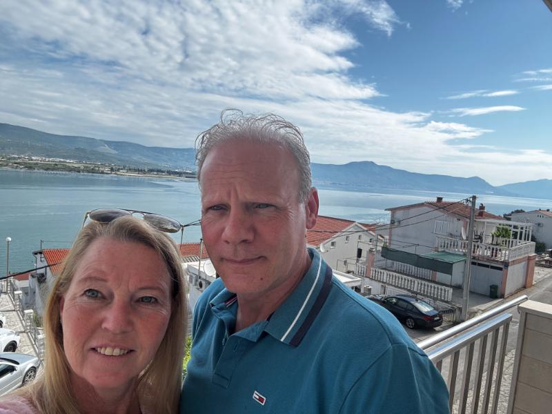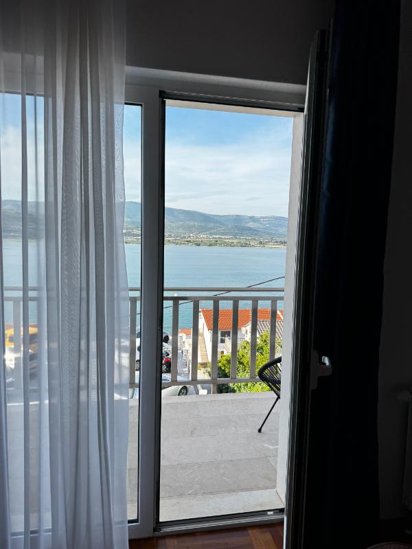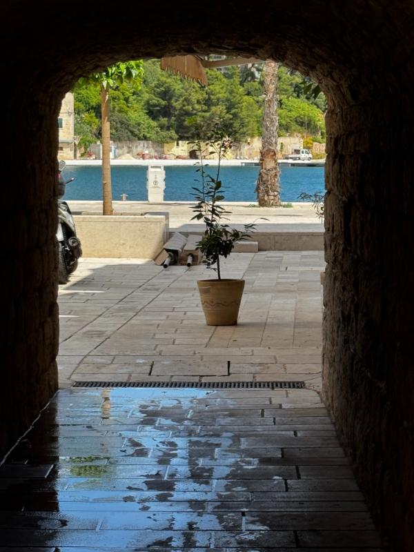 Helaas kan er nog steeds niet bij ons in huis worden gelogeerd. Dus hebben we met onze Vrboska papa en mama afgesproken dat de schoonies bij hun in een appartement zullen verblijven. En geloof me, dat is geen straf. Want het uitzicht is daar prachtig.