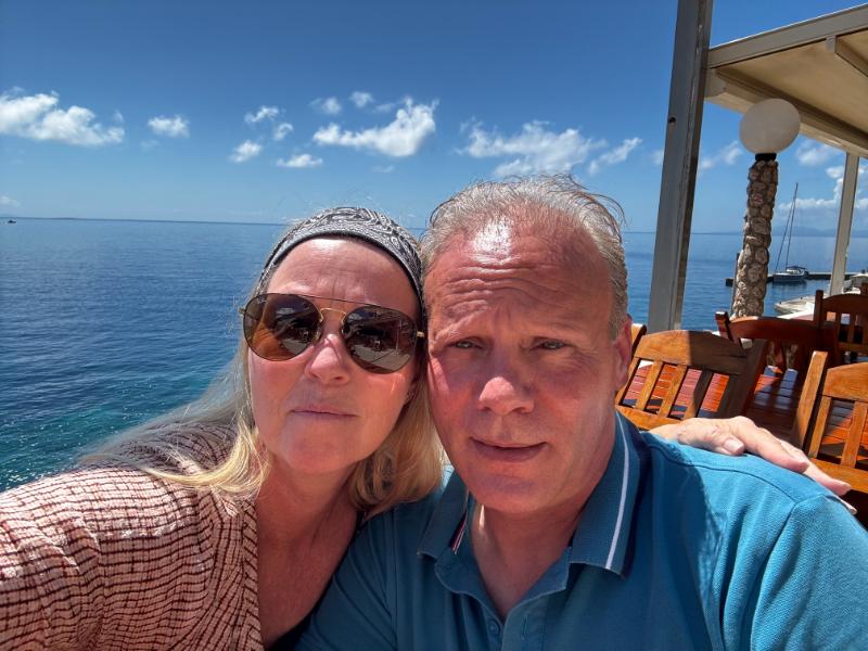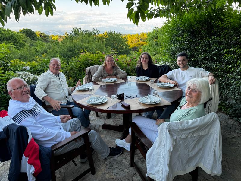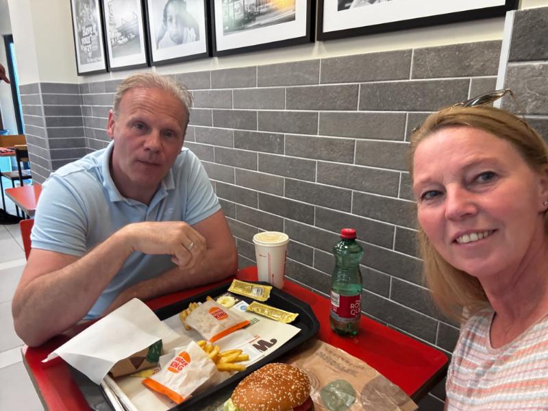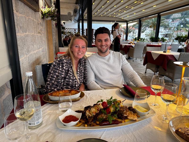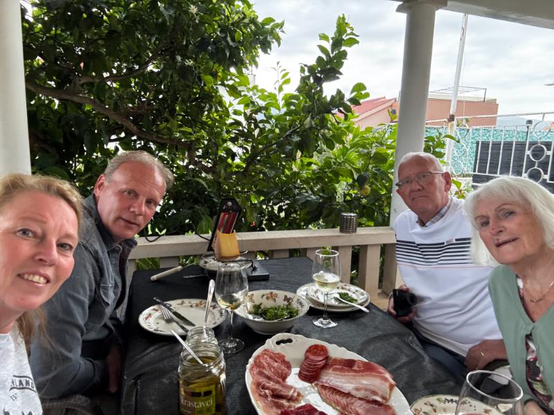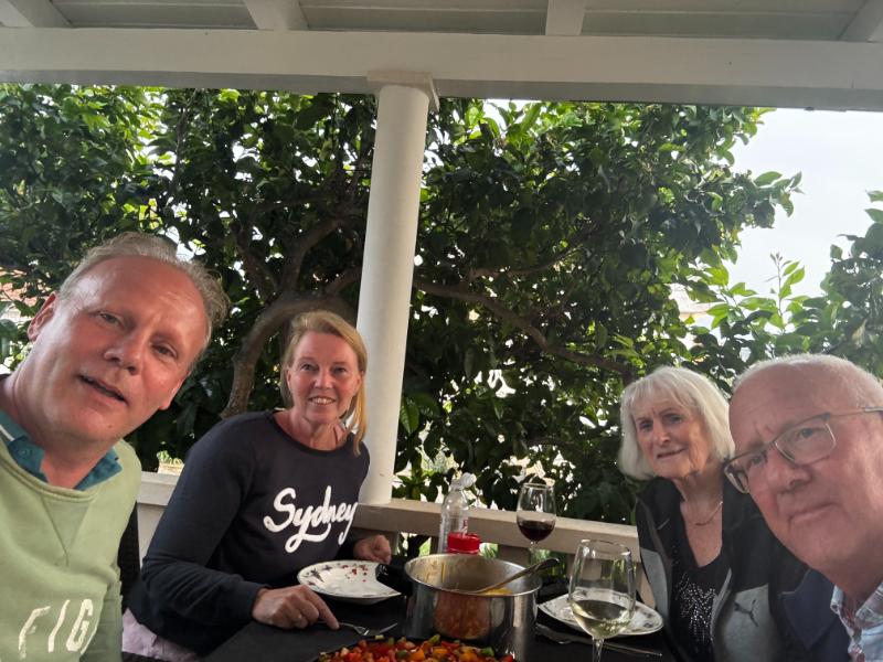 We gaan daarna al snel met 2 auto’s naar het geboekte restaurant. Ze stappen bij me in en kletsen me helemaal bij. Het vliegtuig was al in Nederland vertraagt waardoor ze een vroegere ferry konden nemen.
