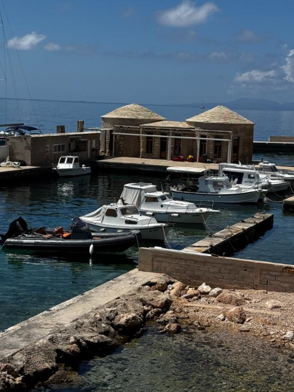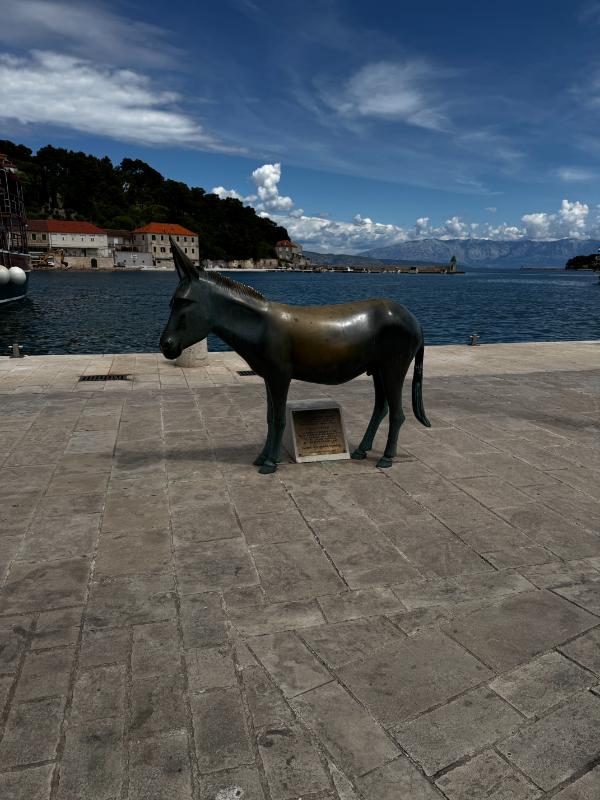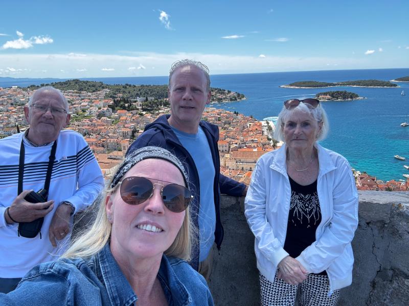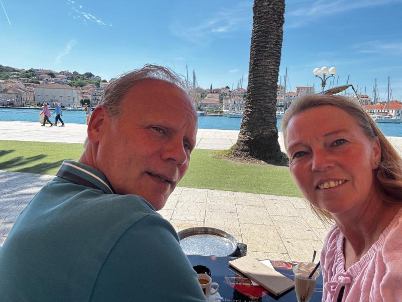 Als de vroege ochtend aanbreek, is het tijd om de schoonies bij de ferry in Stari Grad af te zetten. Manlief mag nog even mee met ze naar boven naar de salon om met de koffer te helpen. Zo makkelijk gaat het hier op het eiland.