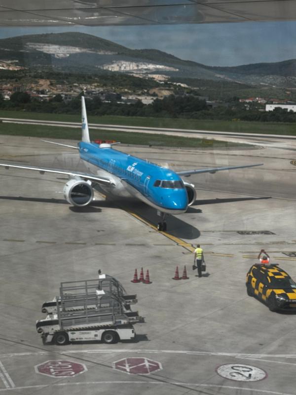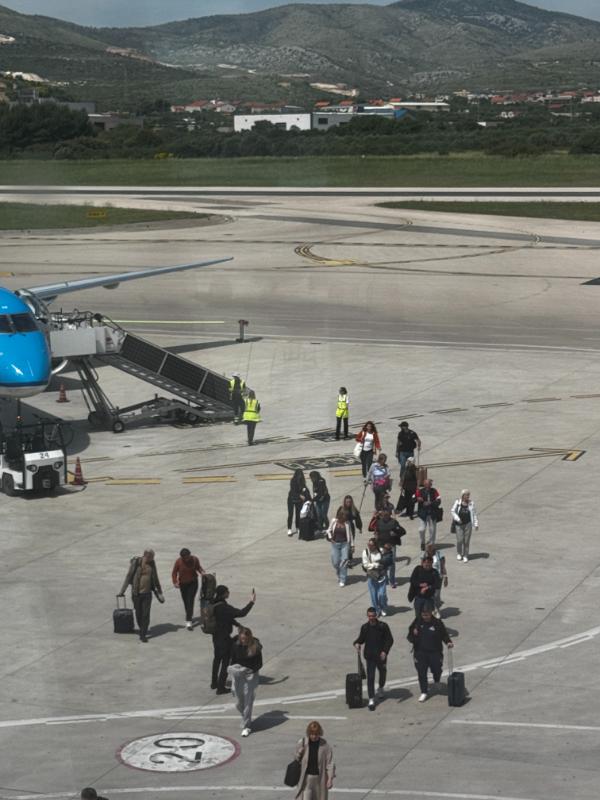 Aangekomen op de luchthaven zien we dat de schoonies 10 minuten langer van hun verblijf in Kroatië kunnen genieten want ze landen 10 minuten eerder.