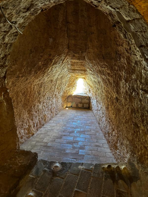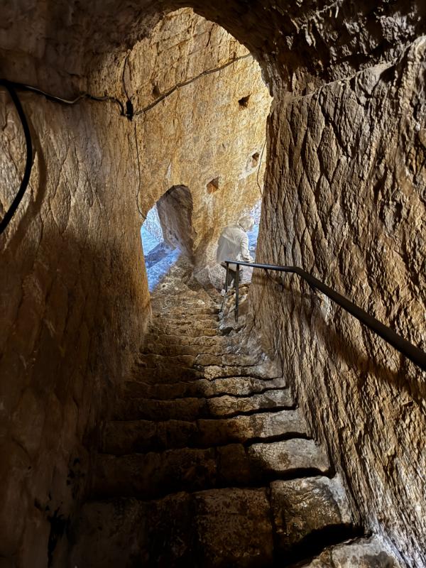 Na een steile wandeling omhoog staan we gelukkig weer buiten boven in het zonnetje.