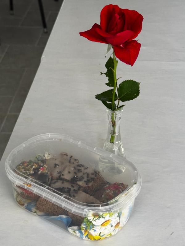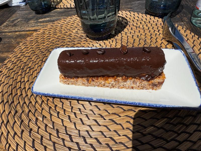 Gluten vrij is er niet echt. Wel hebben ze een kaas en worstplankje die gluten vrij is. Ik koos voor een soort chocolade frikandel drol gebak. Het was wel lekker maar erg machtig.