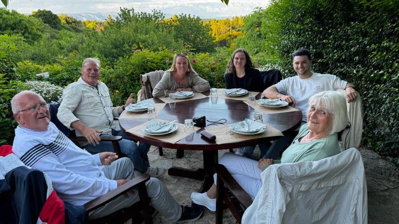 Dit is de beste afsluiter die ik me ooit had kunnen wensen, samen met de schoonies en ons gezin aan een tafel. Op een van de mooiste plekken om te eten.