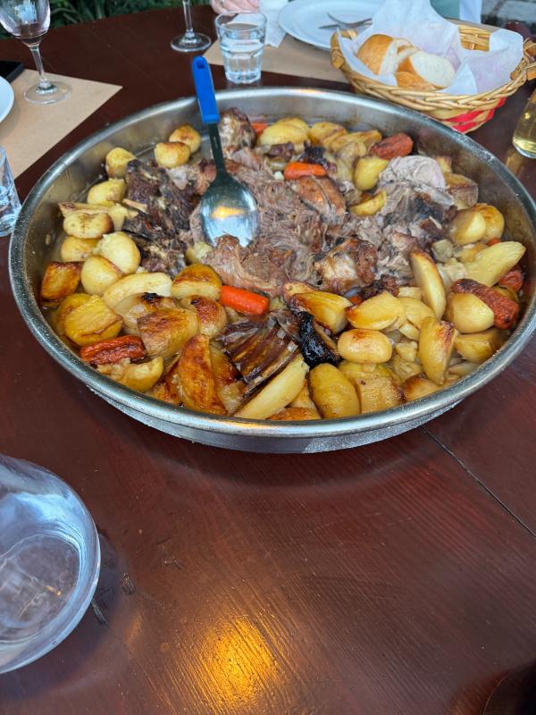 We eten in het restaurant van de ouders van een vriend. Het restaurant heet Restaurant Dubokovic . Ik heb er een heerlijke Dalmatische avond maal Peka besteld. Die ver van te voren wordt klaar gemaakt.