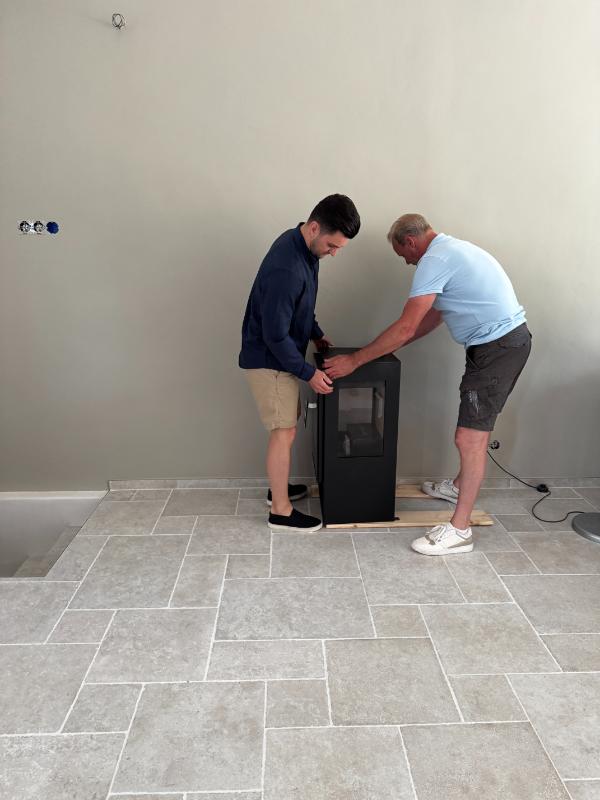 Ondanks dat een kachel hier niet echt nodig is, hooguit op een hele frisse winterdag, wilde we toch een houtkachel. We vinden het mooi staan maar ook nog eens gezellig als we eens een blok hout op een knisperend vuurtje kunnen gooien in de toekomst.