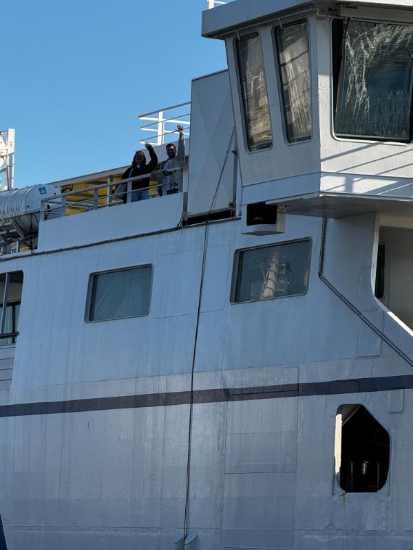 Op de ferry zoeken we een rustig plekje om alles even te laten indalen.
