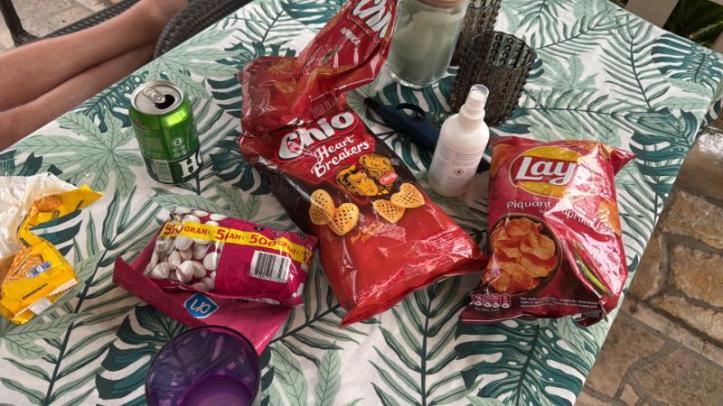 Deze bestond uit gefrituurde aardappelen uit een zak en als afwisseling borrelnootjes.