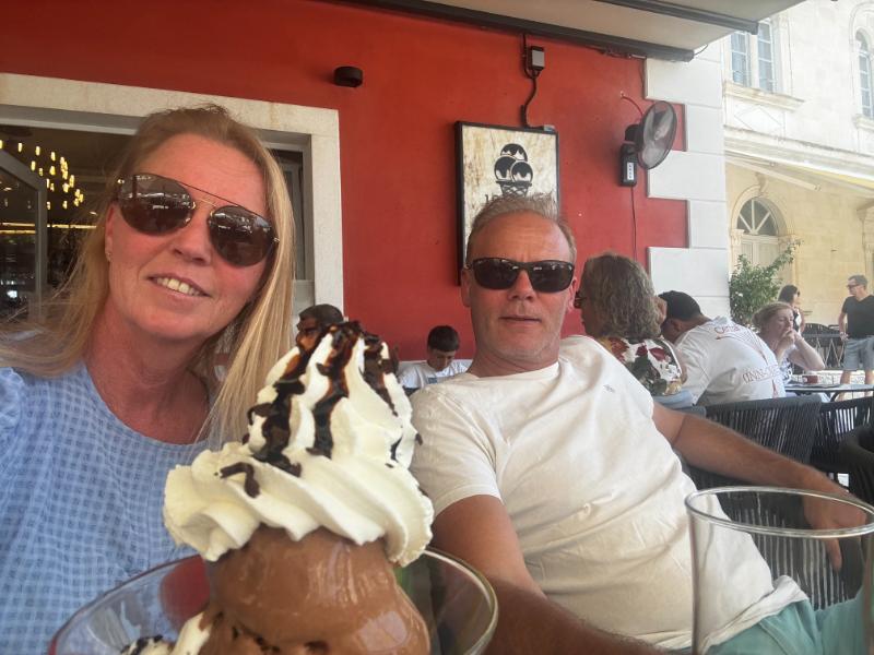 Het is inmiddels woensdag 13 augustus twee uur voor vertrek naar Kroatië. Ik hang aan de telefoon met een vriendin, als ik een video call uitnodiging krijg van dochterlief en favo. Die willen mij vast een goede reis wensen.