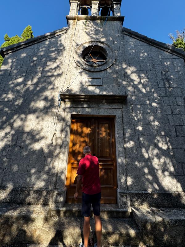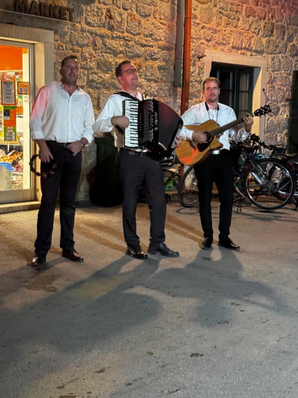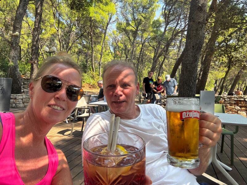 Na ons bezoek nemen we nog een drankje in de konoba en leveren we de sleutel in van de kerk. Wie kan dat nou zeggen hahaha.
