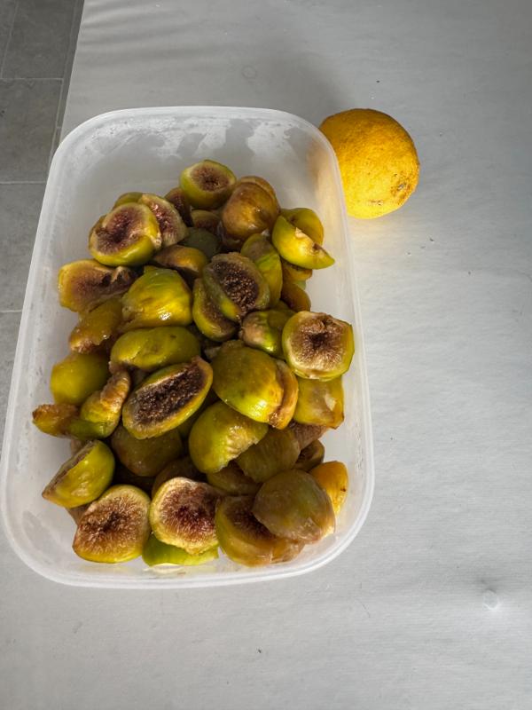 Als ze een mega emmer gevuld heeft, pluk ik de boom leeg en start ik met het maken van mijn eigen vijgen citroenen jam.