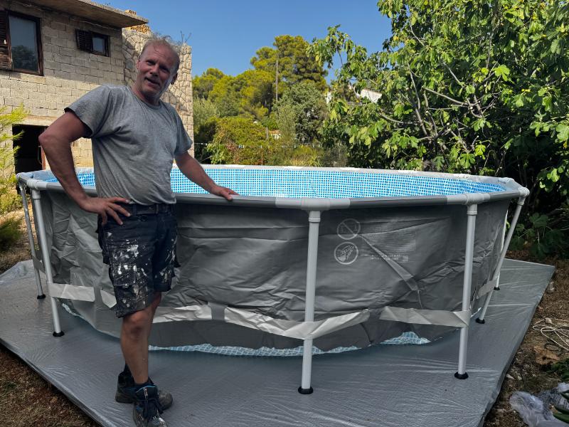 Ondertussen was ik op zoek naar een groot zwembad om te laten leveren op het eiland. Iets was we tijdelijk neer konden zetten. Maar dat bleek onmogelijk omdat voor dat soort aankopen het seizoen blijkbaar voorbij was. We konden wel een andere maat krijgen of iets geleverd krijgen maar dan als we al weg waren.