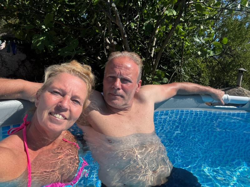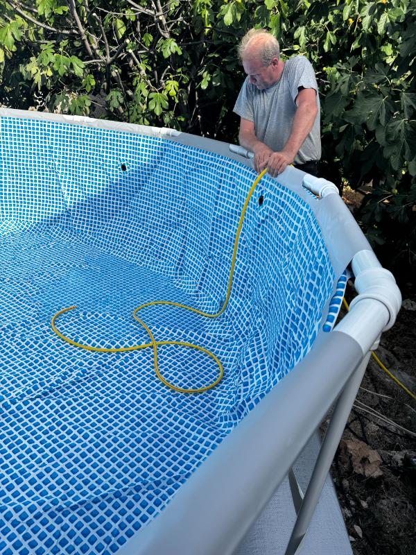 De waterslang gaat er in en vullen maar. Als ik vraag of het lang gaat duren, (ik kan inmiddels niet meer wachten om te plonzen), is het antwoord; ik denk 2 dagen.