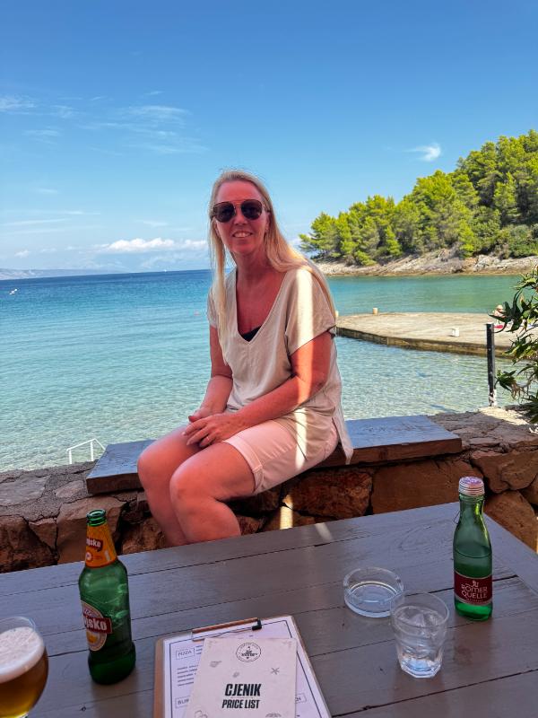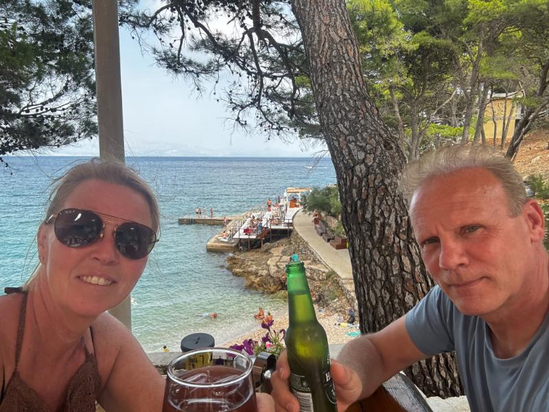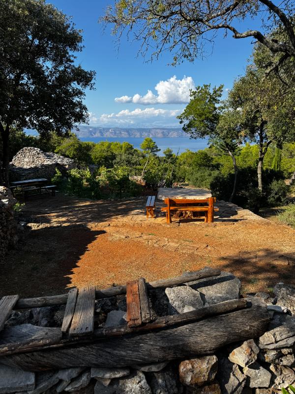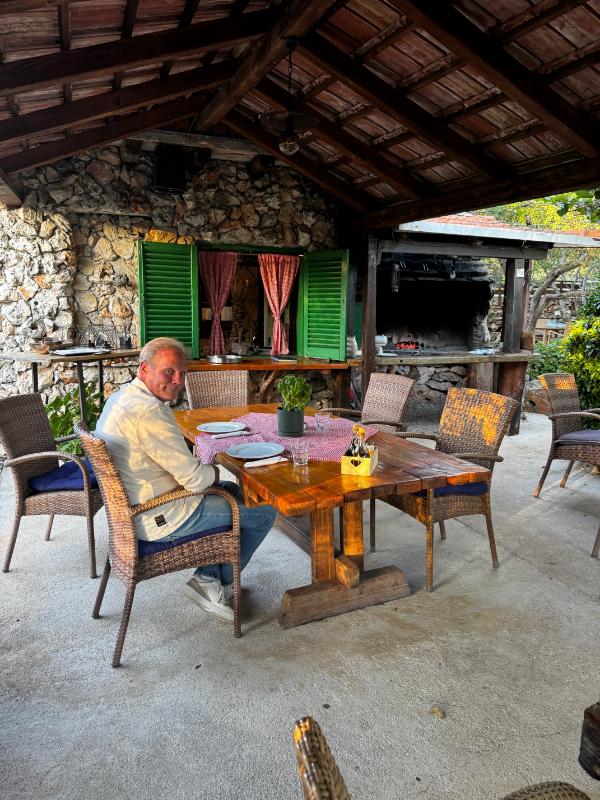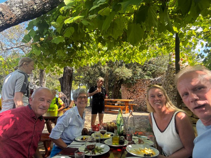 We melden ons eerst bij konoba Humac waar we enorm vriendelijk worden begroet. Het uitzicht is magisch.