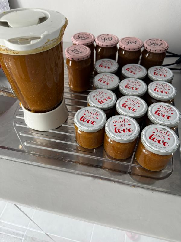 Ik had al glazen potten bijgekocht maar moet toch even naar de overkant om nog wat glas te bietsen om nog meer potten te vullen.