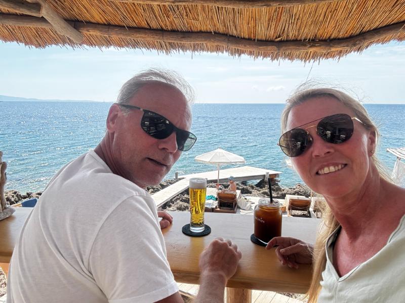 Als afsluiting nemen we een drankje op het strand waar de tennisbaan aanligt. Uiteraard reserveren we ook gelijk voor paar dagen later. uiteraard wel een uurtje vroeger. Dan ga ik wel eerder naar bed LOL.