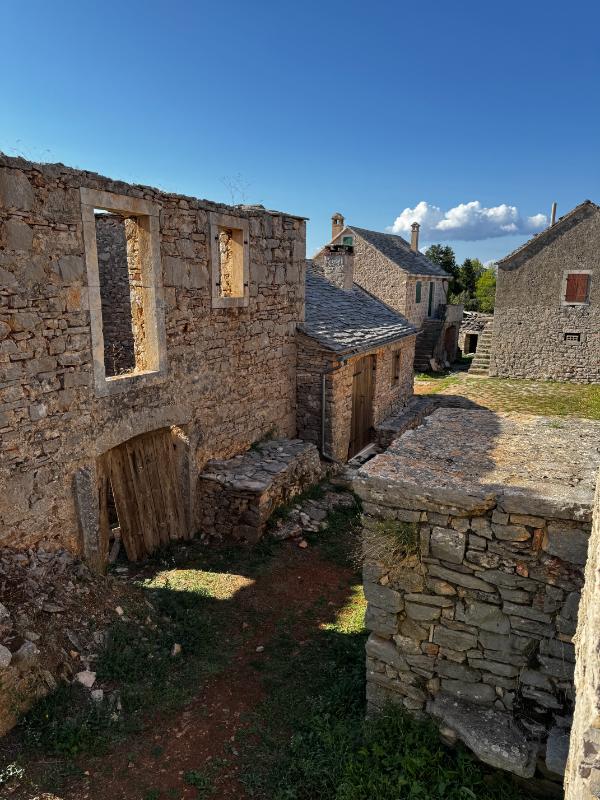 Zij nemen ons mee naar het verlaten plaatsje Humac dat 12 km vanaf Vrboska ligt. Talloze keren zijn we er langs gereden maar we hadden nooit de tijd om het te bezoeken. Zij komen er graag want er zit een super leuke konoba bij met een prachtig uitzicht waar we heerlijk zullen gaan lunchen.