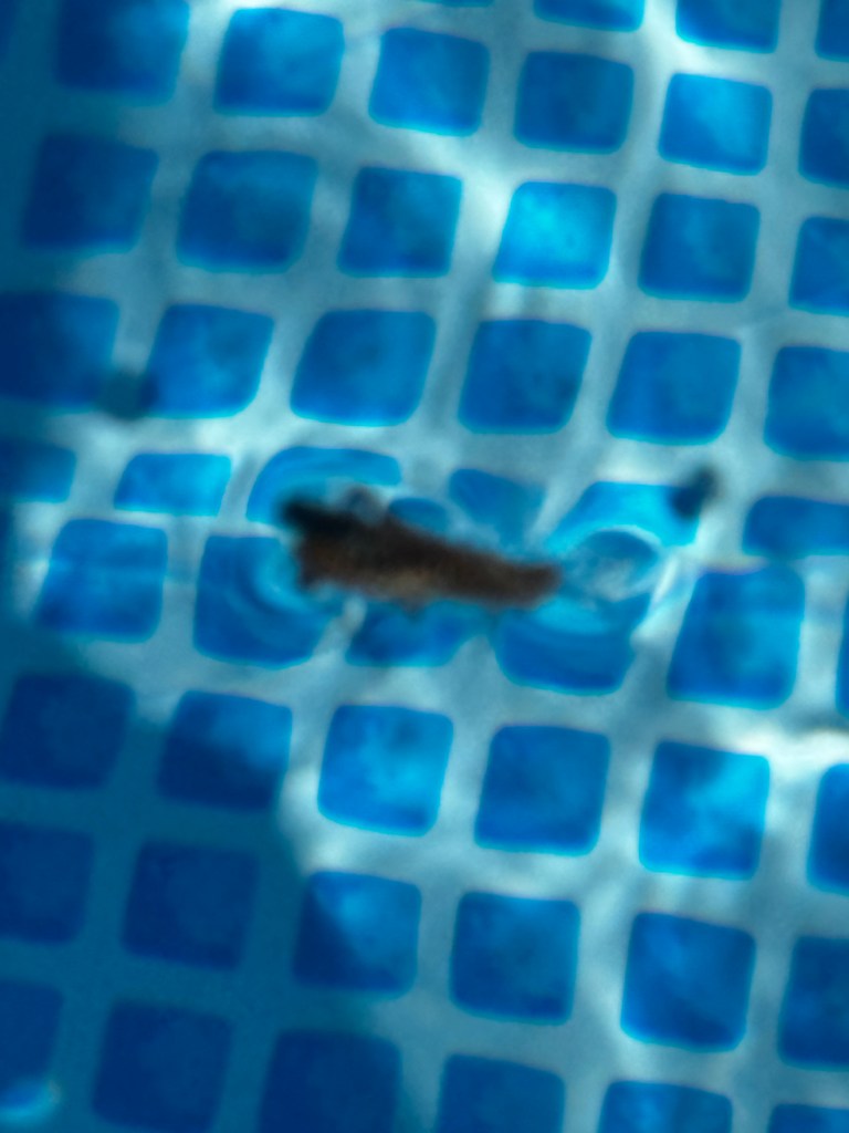 In de middag willen we nog even plonzen in het bad. Maar daarvoor moet ik wel eerst even het dagelijkse wild life verwijderen.